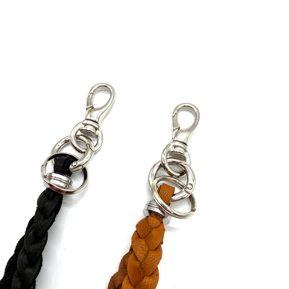 素材には鹿革を使用し、金具にはステンレスと合金を使用。