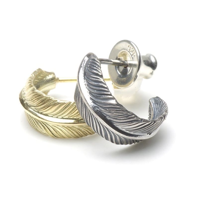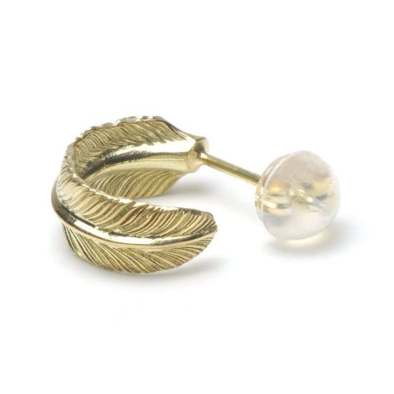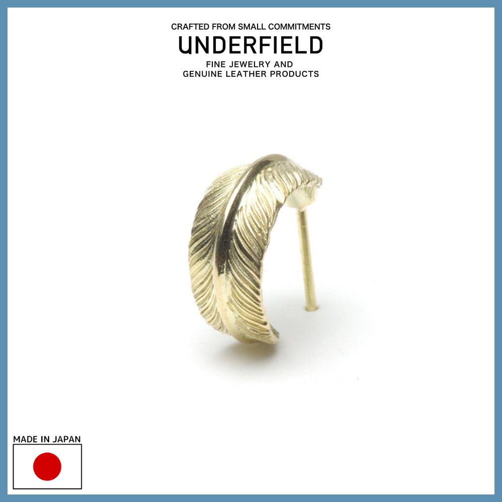 detail: UNDERFIELD アンダーフィールド UP004-K14|FEATHER HOOP PIERCE-K14 小ぶりなフェザーピアス。 細く彫られた羽根、見れば見るほど引き込まれます。 黄色過ぎない程良いK14YG独特のゴールド色をお楽しみください。 material: K14 yellow gold K18 yellow gold (ポスト) size: 正面幅・約5.7mm 直径・約12.3mm *1つの価格です。